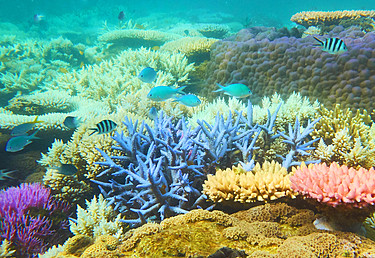 Coral and fish on the reef verging Fitzroy Island south east of Cairns.