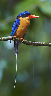 Tanysiptera sylvia This stunning bird migrates from New Guinea in november to nest in termite mounds in the tropical rainforest of northern Australia. Adults and juveniles depart again for New Guinea in April.