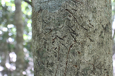 Dendrolagus bennettianus The very elusive Bennett's Tree-kangaroo is found in both mountain and lowland tropical rain forests south of Cooktown, Queensland. These scratchings on food trees indicate the tree kangaroos is present in the area.