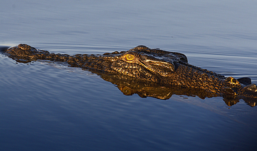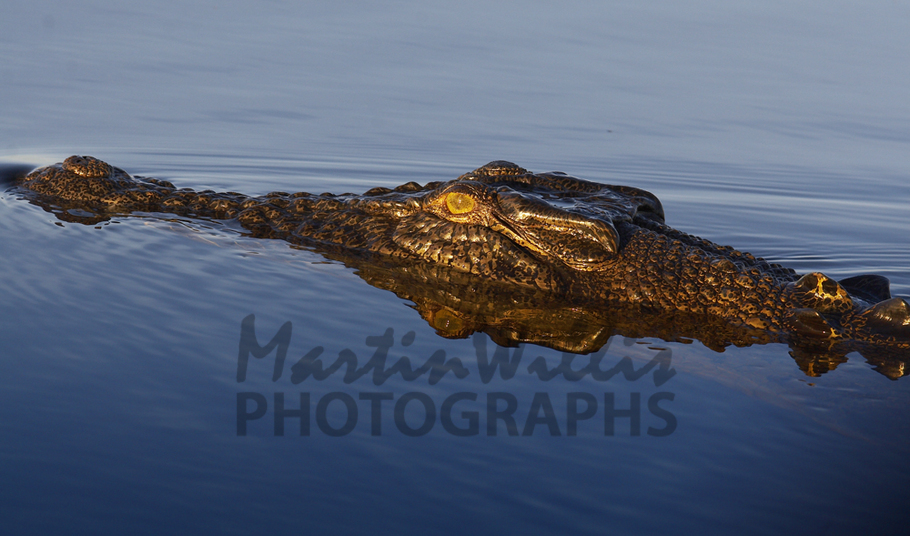 Photographed early in the morning to catch the warm, soft light and reflection this croc is 3-4 metres in length.