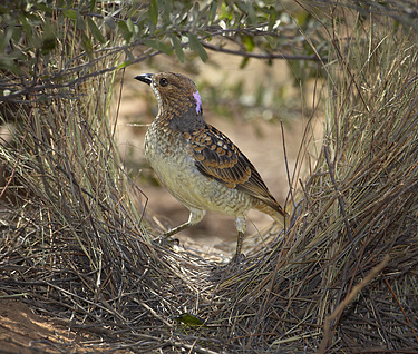 Spotted Bowerbird at bower